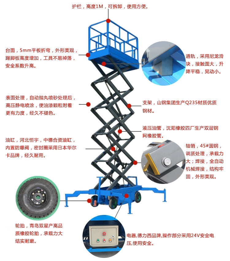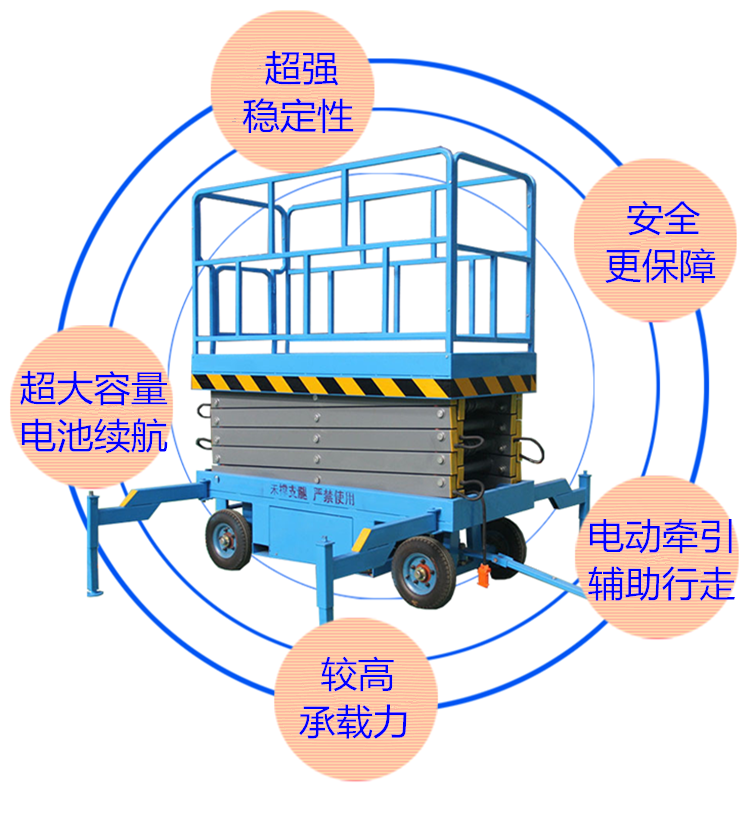 辅助自行式升降平台具有电瓶助力移动功能,移动灵活方便,单人即可实现移动操作,令高空作业更方便快捷,是现代企业高效安全生产之理想高空作业设备。